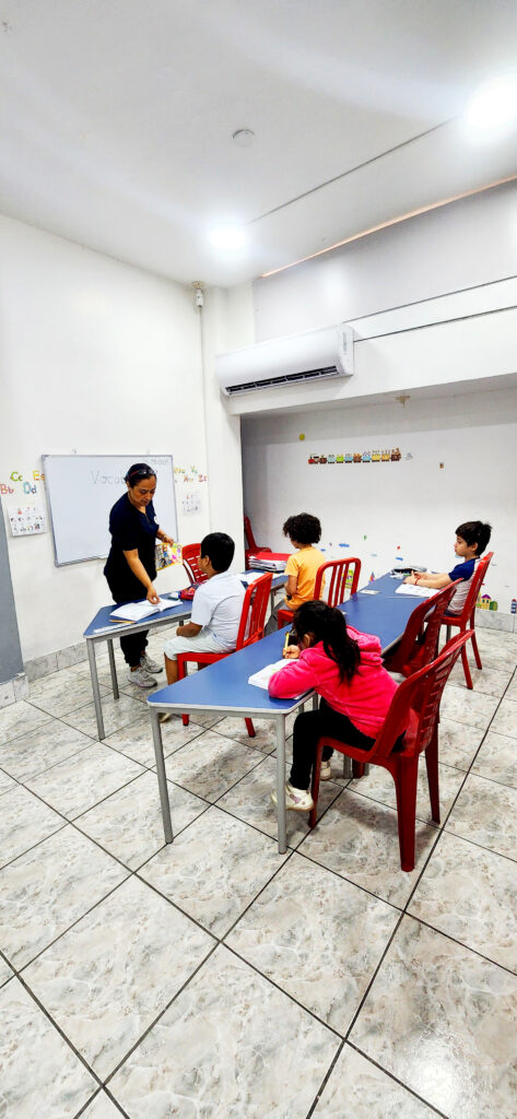 Los estudiantes asisten diariamente a un ambiente educativo organizado, con rutinas, actividades académicas y acompañamiento constante.